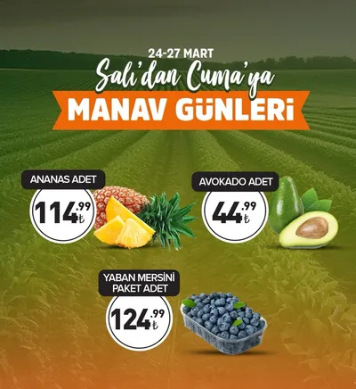 Çelikkayalar 24 Mart 2026 Aktüel Kataloğu'nda Ananas adedi 114.99 TL ve Avokado adedi 44.99 TL gibi avantajlı fiyatlarla sunulmaktadır.